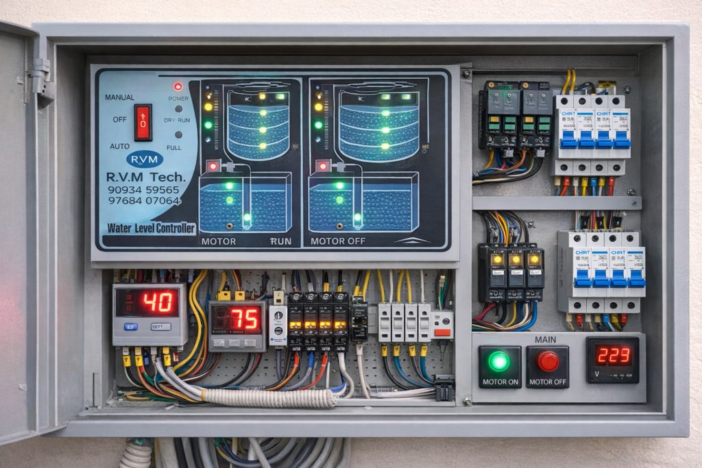 Whether you need professional installation, repair, or automation for your water level controller system, RVM Tech is here to provide quick and reliable support. Reach out to us — we’d be happy to help you manage water efficiently and ensure safe, hassle-free motor operation.